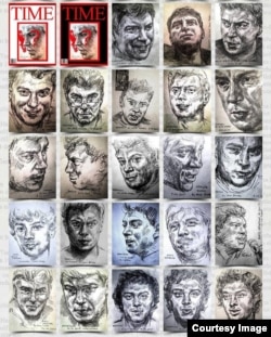 Suratkeş zenan: "Nemtsow harizmatik, lebzi halal adamdy. Onuň portretini çekmegi dowam edýärin. Durup bilemok, şol çekip gidip otyryn..." diýýär.