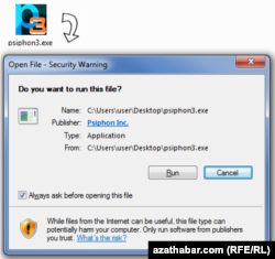 Müşderi programmasyny göçürip alyp, ony işlediň. Ony işledeniňizde, bu programmanyň Psiphon Inc. kompaniýasynyň kanuny önümidigini görkezýän howpsuzlyk sowalyny görersiňiz.