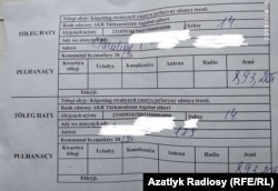 “Köpetdag etrabynyň ýaşaýyş jaýlaryny ulanyş tresti tarapyndan çykarylan töleg hatyny şäher edaralarynyň işgärleriniň özleri doldurypdyrlar. Ortaça 54 m2 jaýyň ýyllyk tölegi 2018-nji ýylda 400 manada barabardy. Şu ýyldan başlap bu töleg 893 manat 20 teňňe edildi. Bu tölegleriň ýaşaýyş jaý, ýyladyş we zir-zibilleri ýygnamak hyzmatlary üçin alynýandygy aýdylýar. Ýöne bu hyzmatlaryň her biri üçin anyk näçe tölegiň alynýandygy aýdyňlaşdyrylmaýar” diýip, habarçy gürrüň berdi.