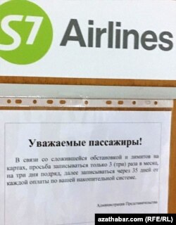 Habarçy Russiýanyň “S7” howaýollary kompaniýasynda bolsa, raýatlar biledi satyn almak we onuň bahasyny tölemek üçin azyndan üç gezek öňünden nobata ýazylmaly bolýar diýýär. Bu barada kompaniýanyň edarasynda ýörite bildiriş hem asylyp, onda şeýle diýilýär: