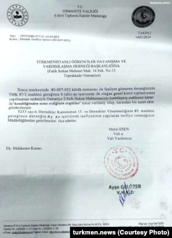 Türkiýäniň Osmaniýa şäheriniň häkimiýetleri Türkmenistanly studentleriň raýadaşlyk we özara kömek guramasyny ýapdylar diýip, “Turkmen.news” neşiri habar berýär.
